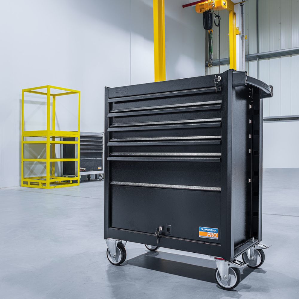 Em operações que exigem organização e maior capacidade de armazenamento, o modelo 44950984 se destaca pela combinação de gavetas com compartimento fechado, permitindo armazenar ferramentas e equipamentos maiores no mesmo equipamento.