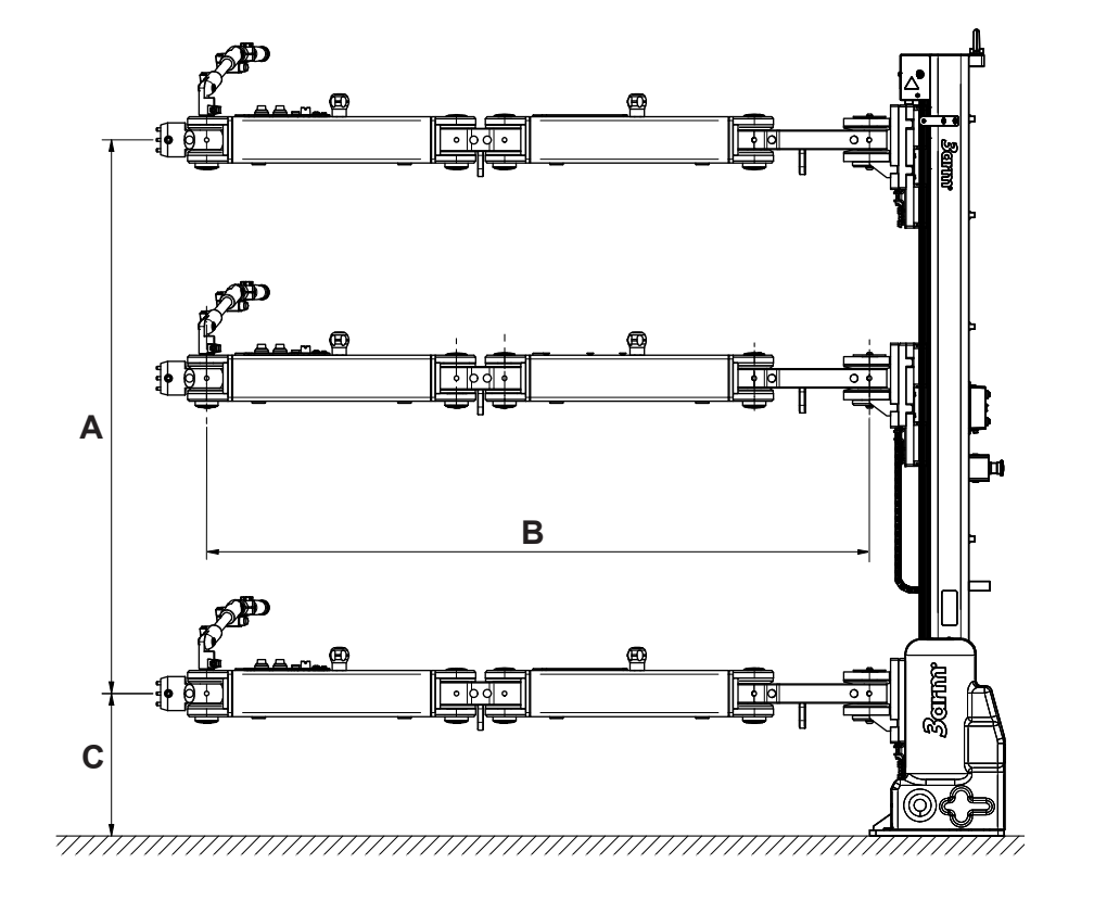 Montagem superior (Ceiling) com braço radial de 627 mm