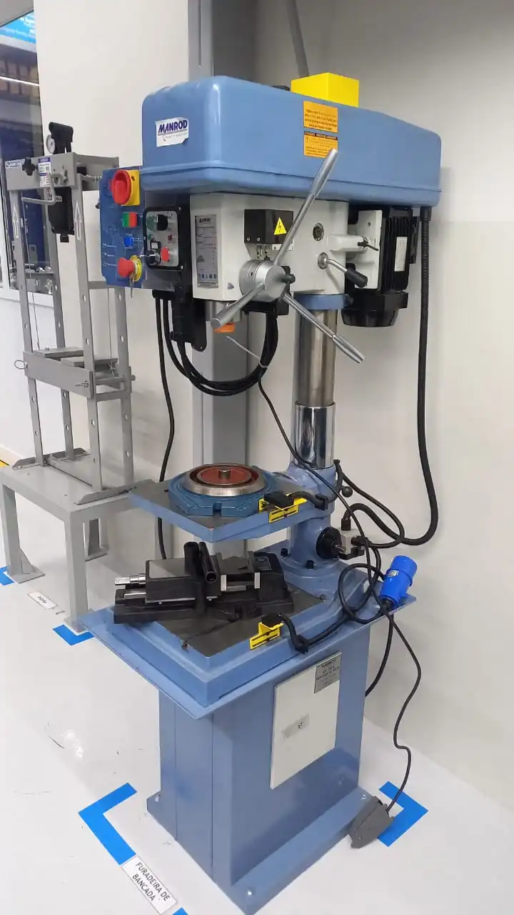 A Furadeira Fresadora MR-201 é uma máquina robusta para furação e fresamento, com capacidade de furação até 31,5 mm, motor 2 HP e mesa coordenada ampla para trabalhos de usinagem com precisão.